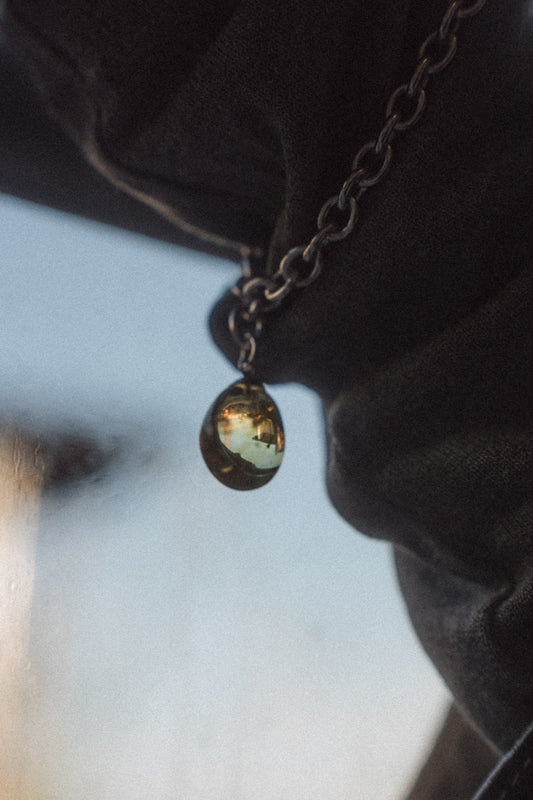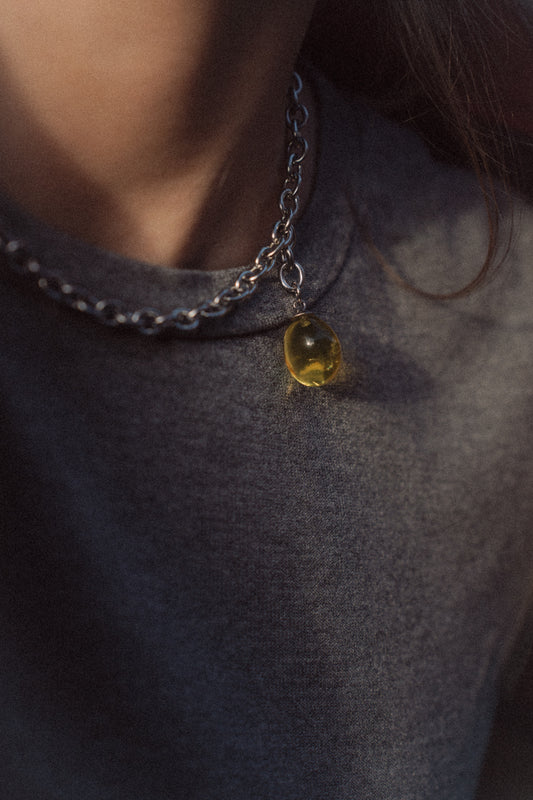 Naszyjnik ŻURAW: bursztyn cytrynowy i srebro