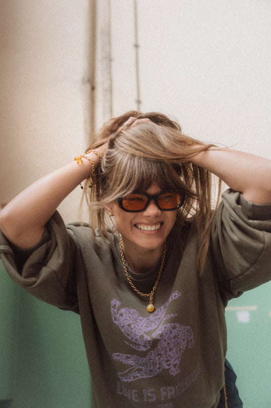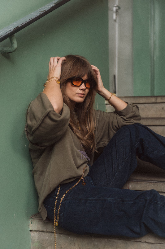 Bransoletka ŻURAW: bursztyn koniak i złoto