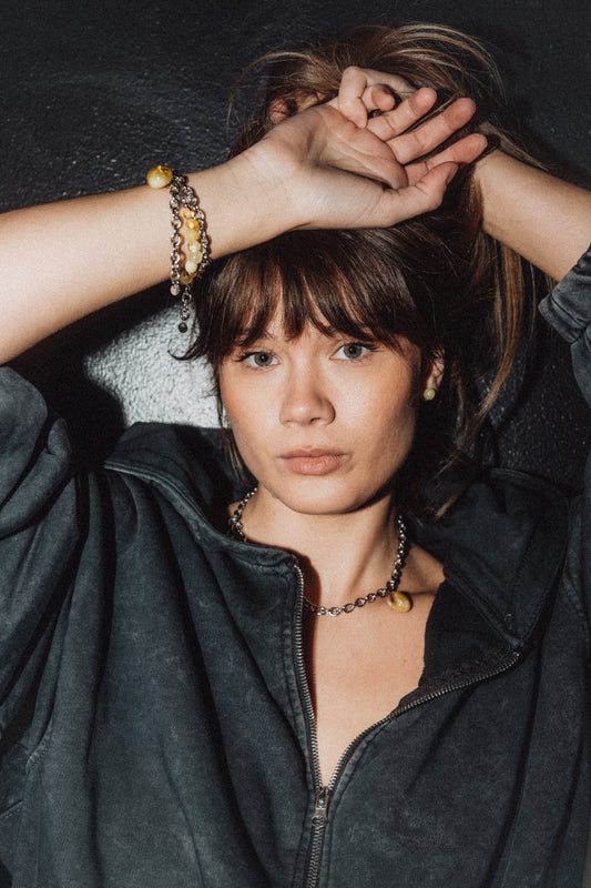 Bransoletka ŻURAW: bursztyn cytrynowy i srebro