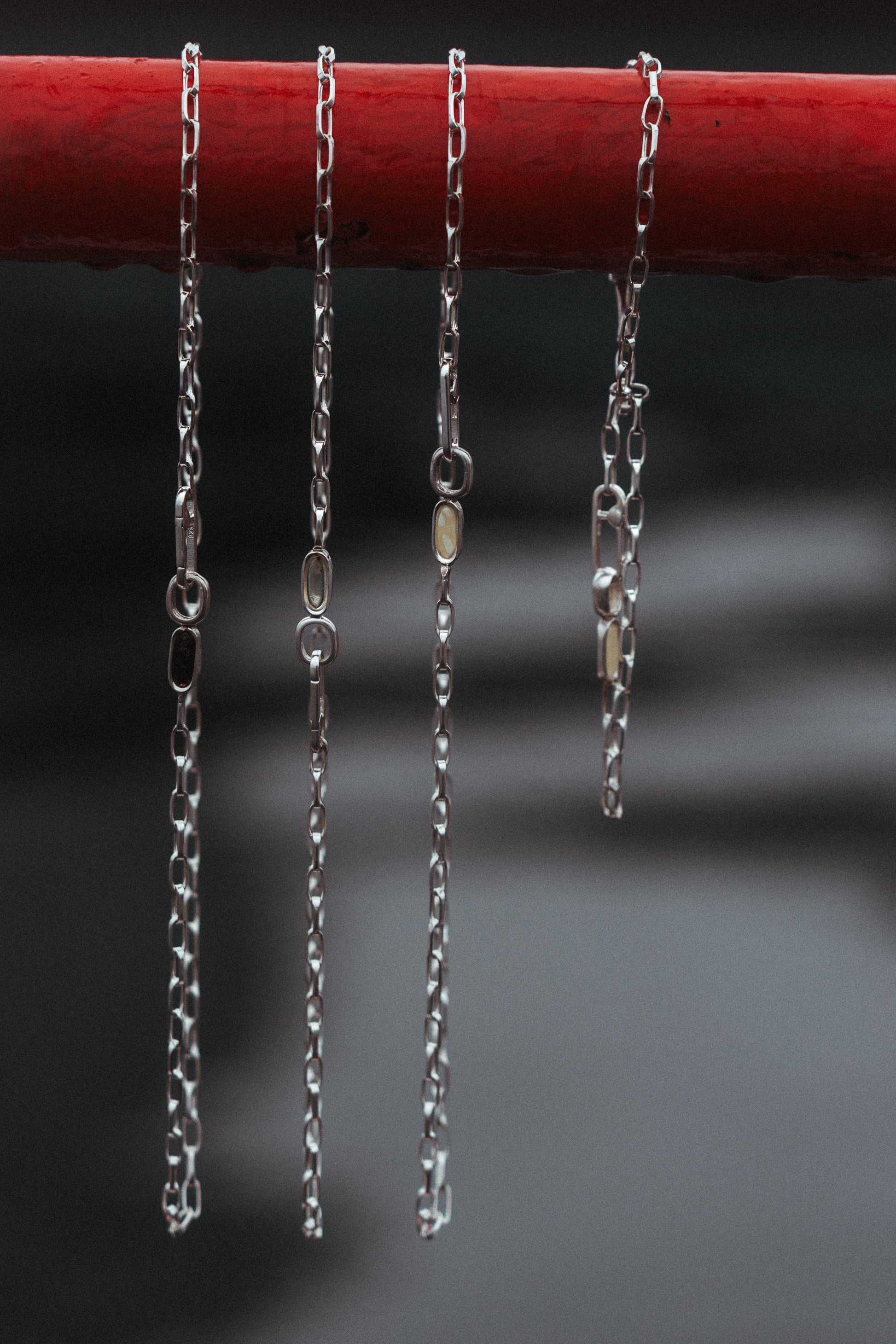 Regulacja długości sprawia, że ogniwo z zatopionym bursztynem może przybierać formę delikatnie wiszącego elementu, który nadaje naszyjnikowi bardziej wyrazisty, charakterystyczny kształt.
